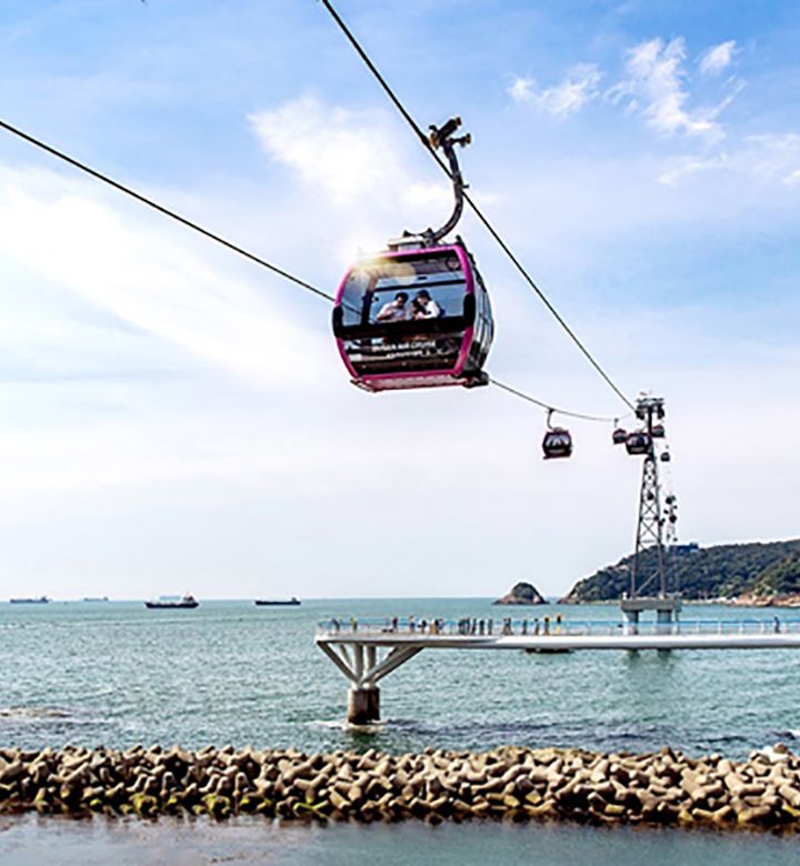 新しい釜山観光スポットの松島海上ケーブルカーに乗って、ケーブルカーから見える釜山の絶景をお楽しみください。