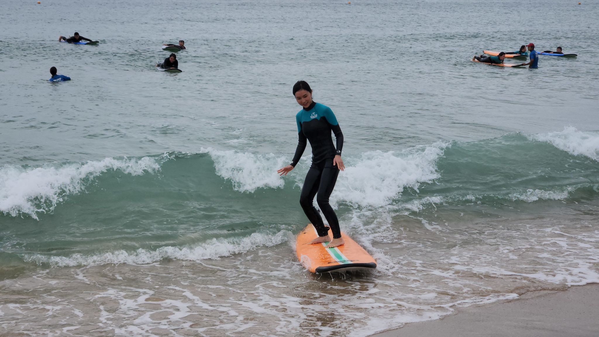 wake up on the surfboard with the help of my coach