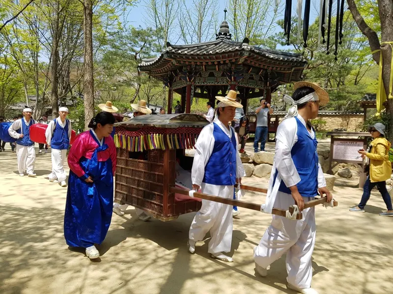 Cosmojinガイドと一緒に韓国民俗村の伝統的な魅力に浸りましょう。 韓国民俗村に入ると、古代韓国の伝統生活が展示されている生きた博物館に出会います。 韓屋、工房、公演などを通じて伝統村の雰囲気を体験することができ、陶芸や織物などの伝統工芸品が作られる過程を直接見ることもできます。 民俗舞踊、武術、音楽公演など、文化的なデモンストレーションをお楽しみください。 ▶ツアー時間 13:00~17:30 ▶体験最小/最大人数 3名 / 10名
