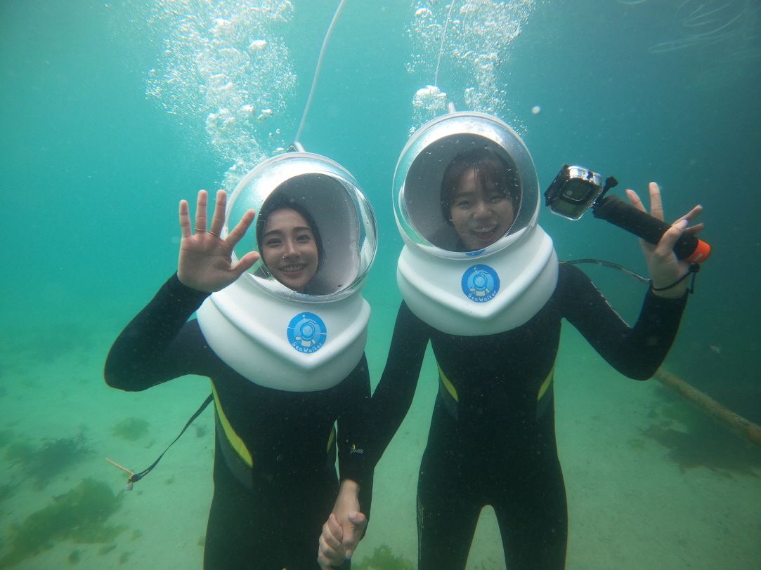 海中で自由に呼吸しながら海中を見ることができるシーウォーカー体験です。