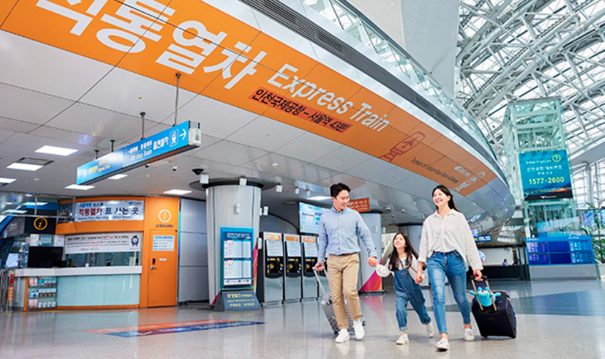 AREX直通列車で仁川空港からソウル駅までノンストップ43分。オンライン予約でQR乗車、スムーズで便利な空港アクセス。