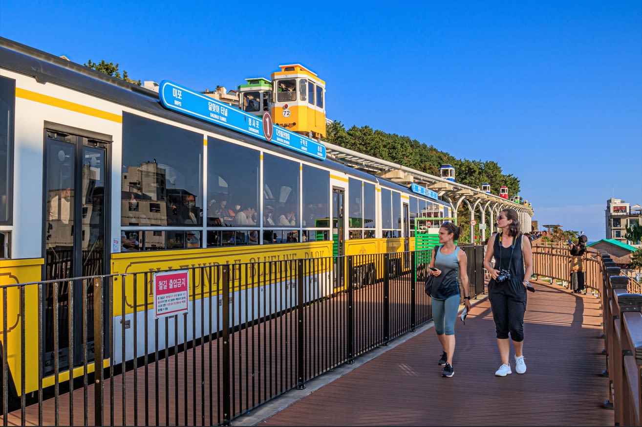 - 海雲台ビーチ列車とスカイカプセルに乗って、釜山の絶景海岸を満喫できます。