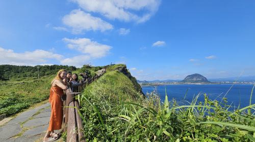 After enjoying lunch at a local restaurant (at your own expense), stroll through the peaceful O’sulloc Green Tea Fields before walking along the coastal trail of Songaksan Mountain, offering sweeping ocean views. End the day at Bomunsa Temple at the foot of Sanbangsan Mountain, a serene spot that perfectly captures Jeju’s harmony of nature, culture, and calm.