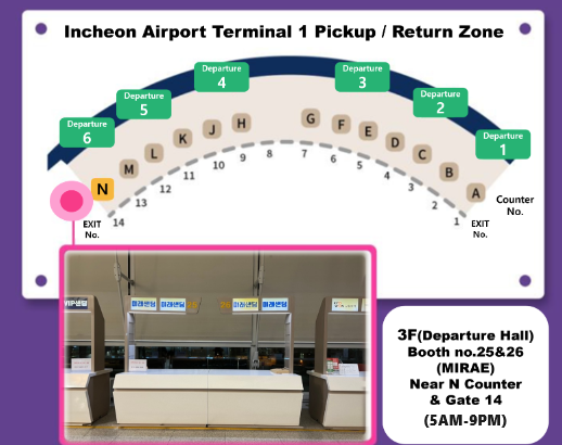 ※ 租借日1天前下午1点之前必须提交谷歌表格(未提交或提交期限后提交时,商品只能在1号航站楼领取)