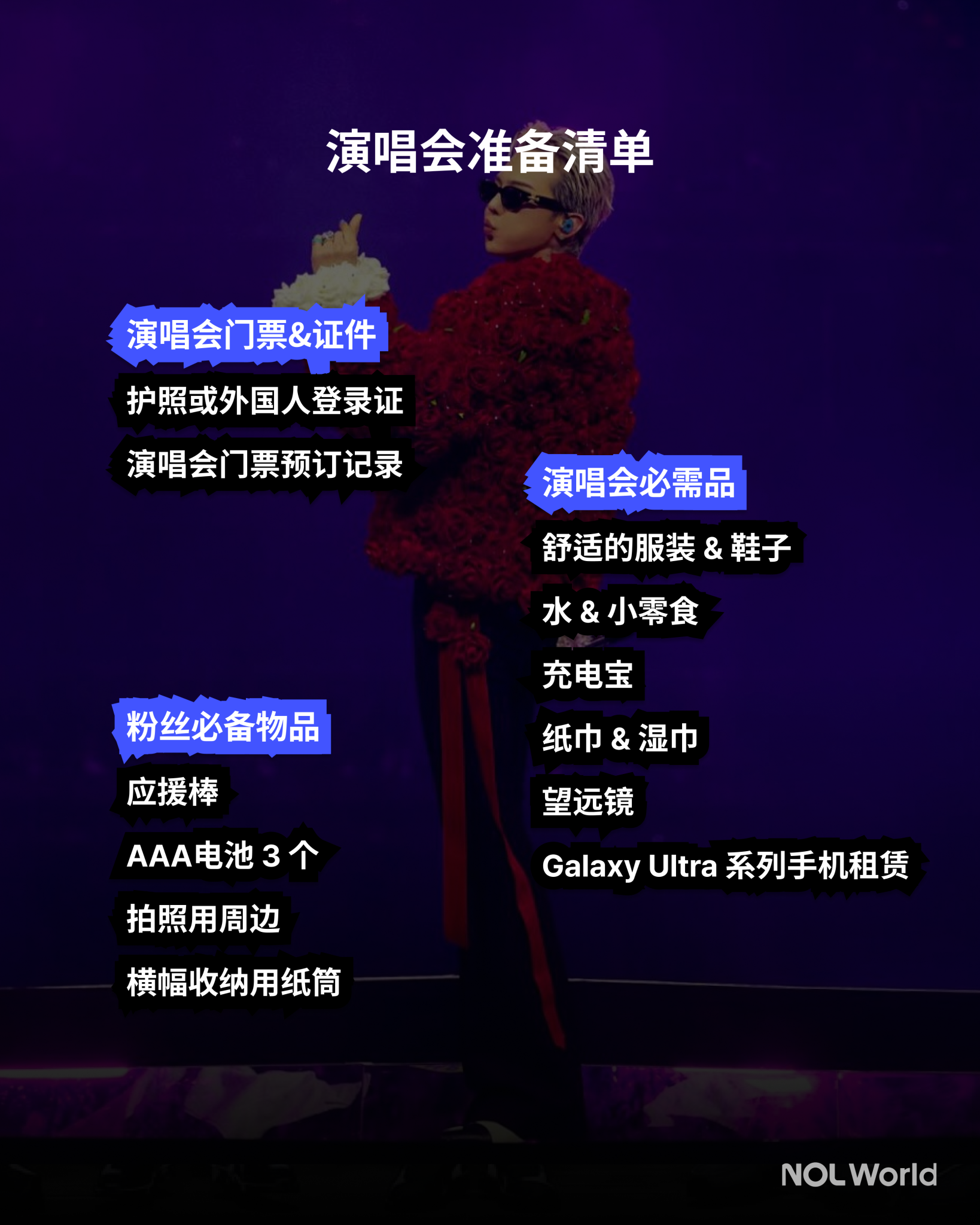 别忘了带上身份证、应援棒和电池。为了拍纪念照,建议带上小卡、玩偶等周边。若座位较远,望远镜也是不错的选择。有了这份清单,就算是准备完成啦!✨