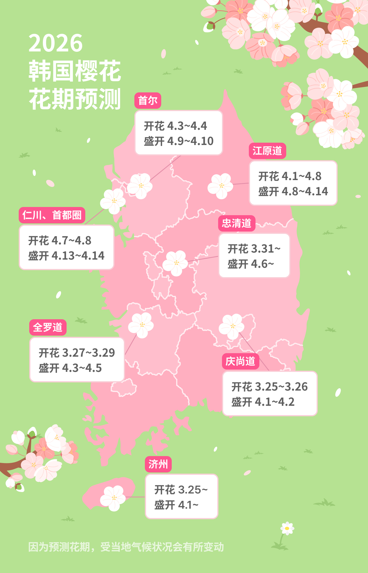 🌸 2026 韩国樱花开花时间预测