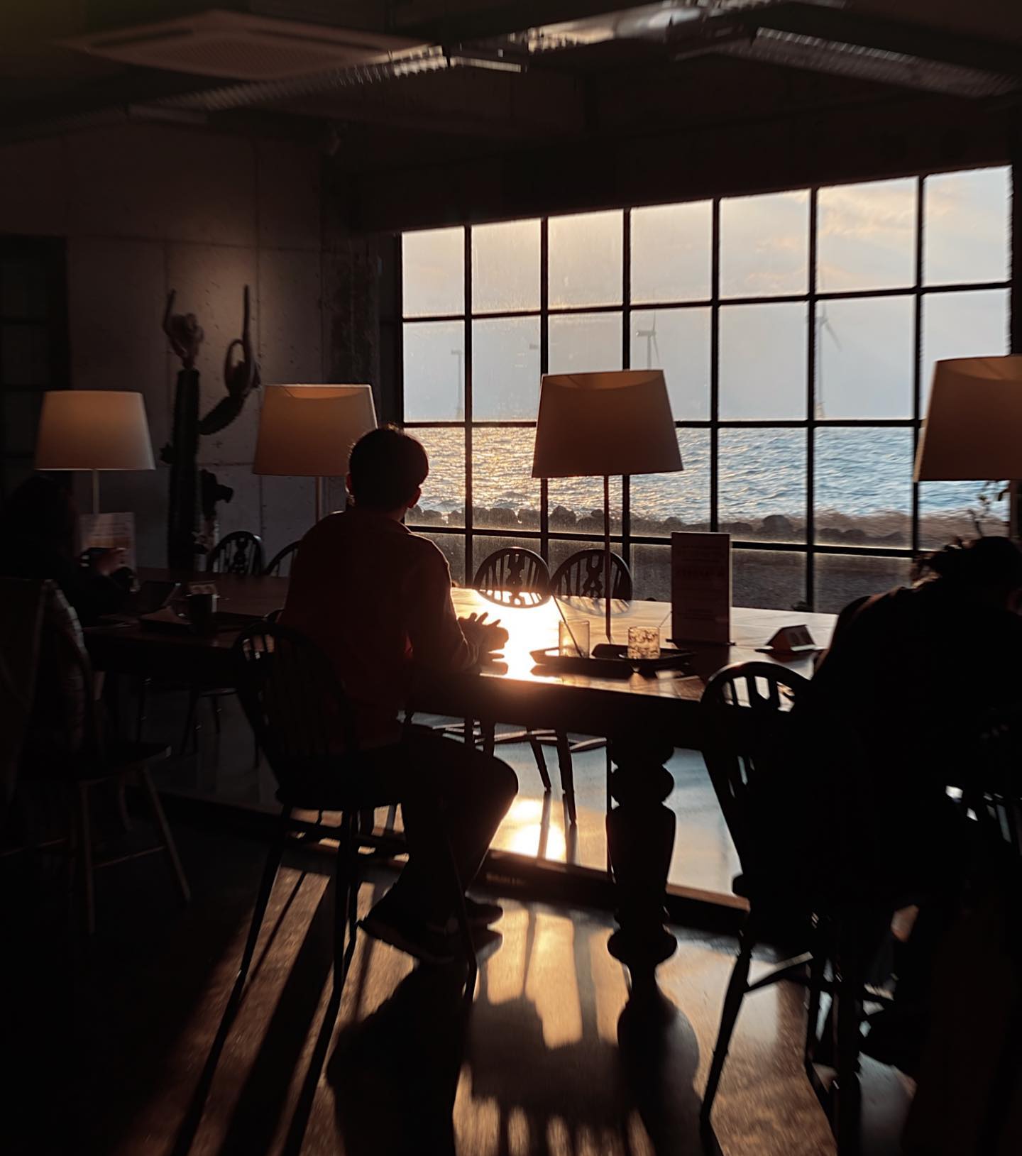以美丽的日落而闻名的地方。落地玻璃窗设计,无论从哪里都能看到大海。这里的魅力在于2层的通道,蓝色大海在相框般的框架中展开,正在SNS上人气飙升。 · 位置:翰京 · 停车空间:不足