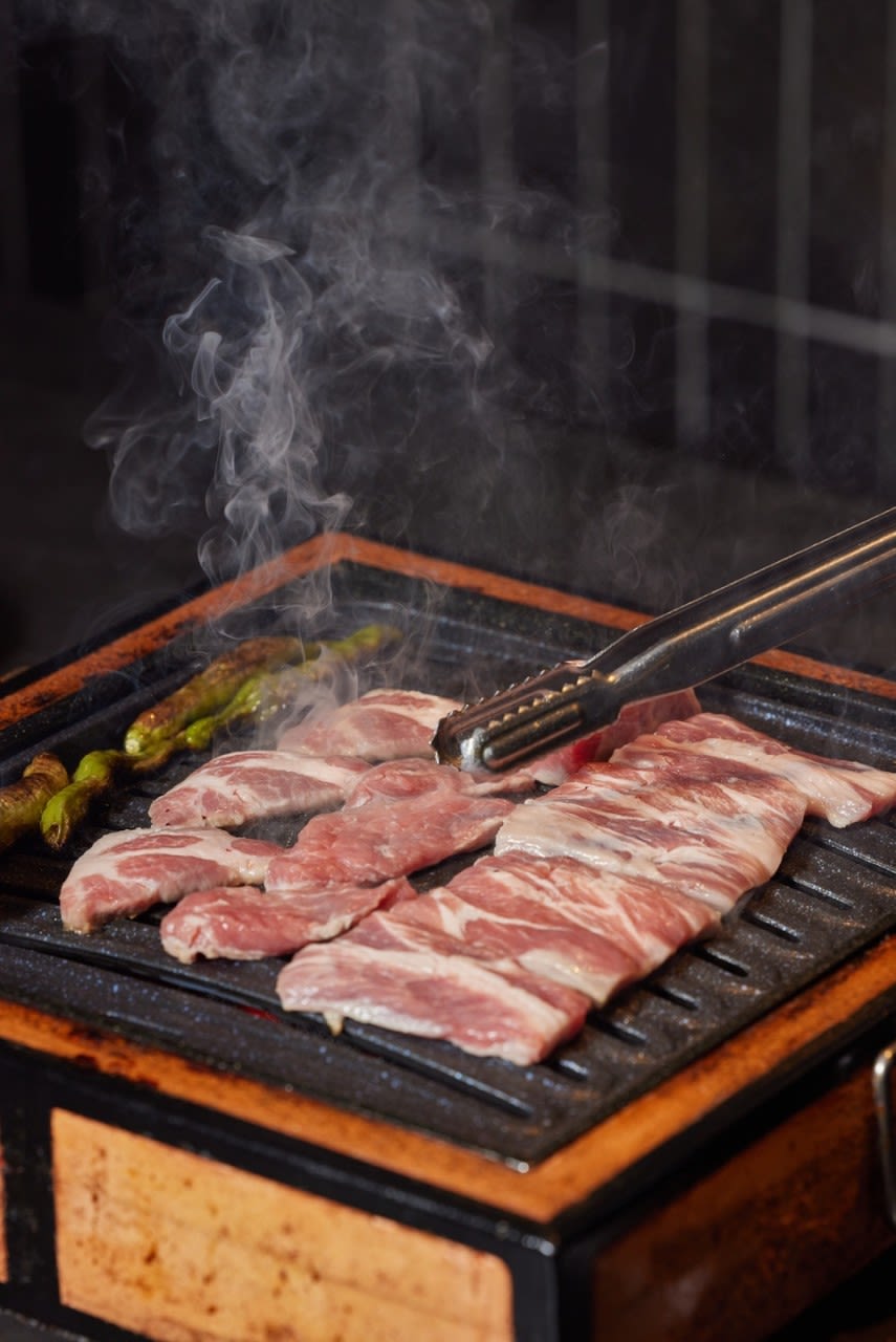 五花肉和泡菜,即使单吃也足够美味的两种食物相遇会怎样?在五花肉烤出的醇香油脂中煎烤过的泡菜,美味度简直爆表!而且辣味也会减弱,即使不太能吃辣的人也可以轻松挑战。一定要把泡菜放在烤盘上充分烤熟后搭配五花肉吃,感受那绝妙的鲜香。
