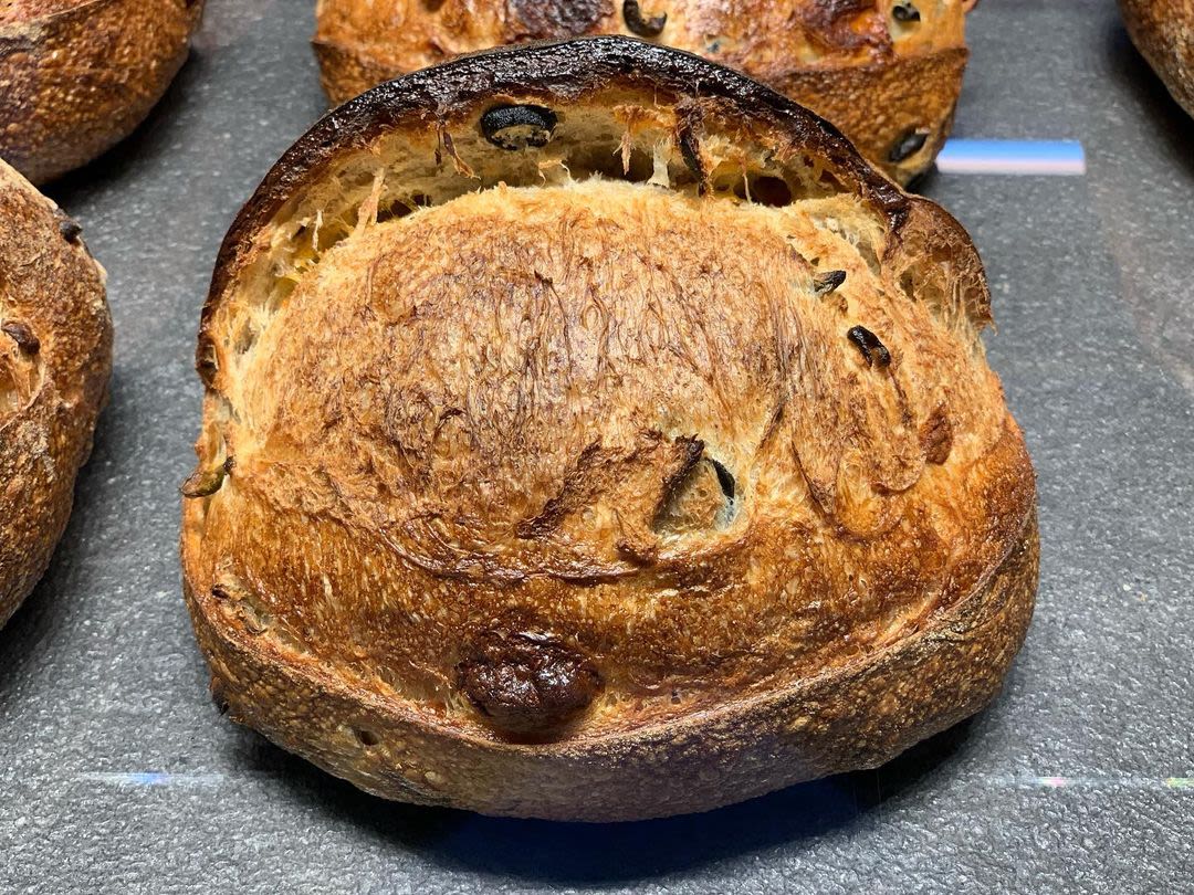 使用3种干酪、罗勒、橄榄和天然酵头制作的面包