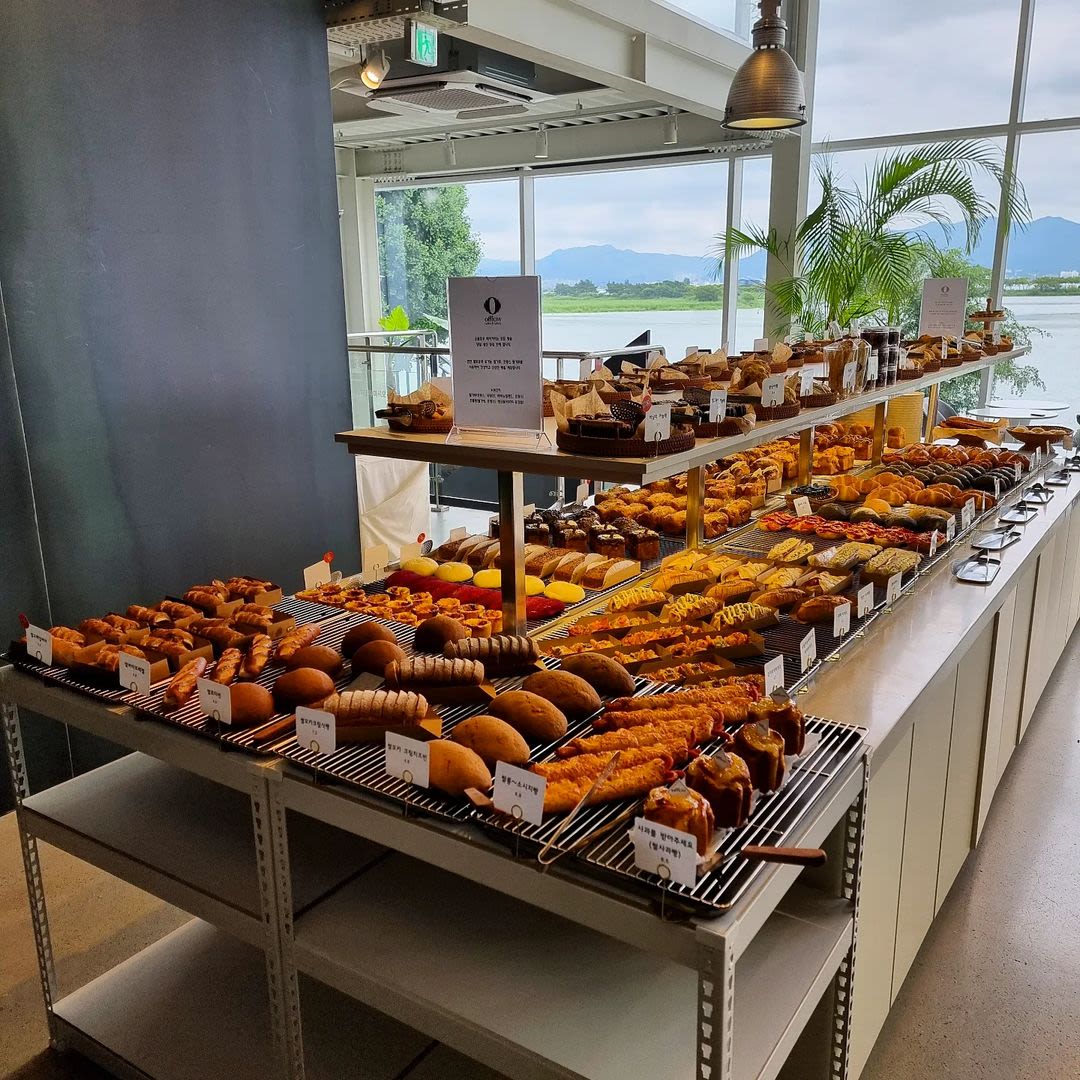 面包咖啡厅,可透过大玻璃窗边欣赏洛东江景色边享用咖啡和甜点