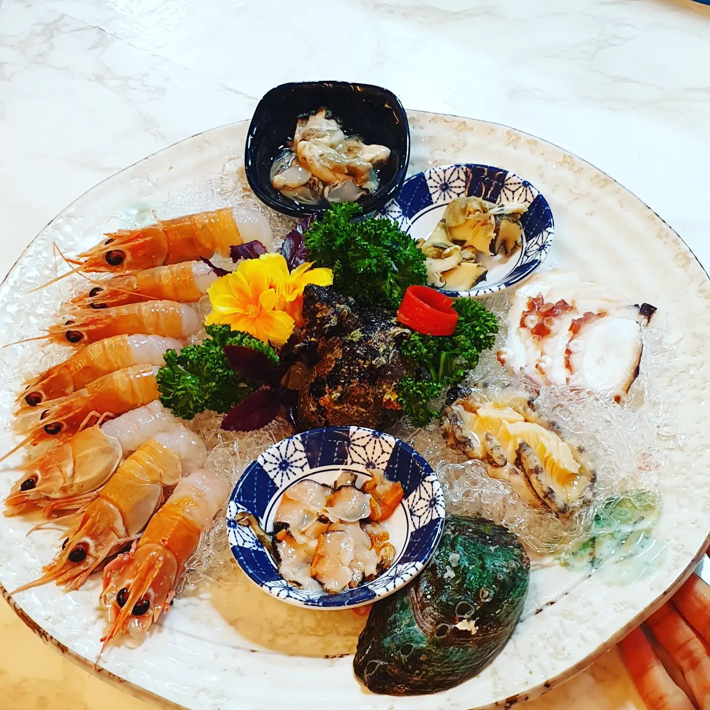 提供满桌小菜和生鱼片、刺身套餐的生鱼片店