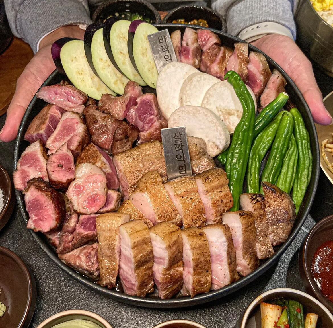 猪肉专门店,经过木炭和稻草两次烤制充满了肉汁