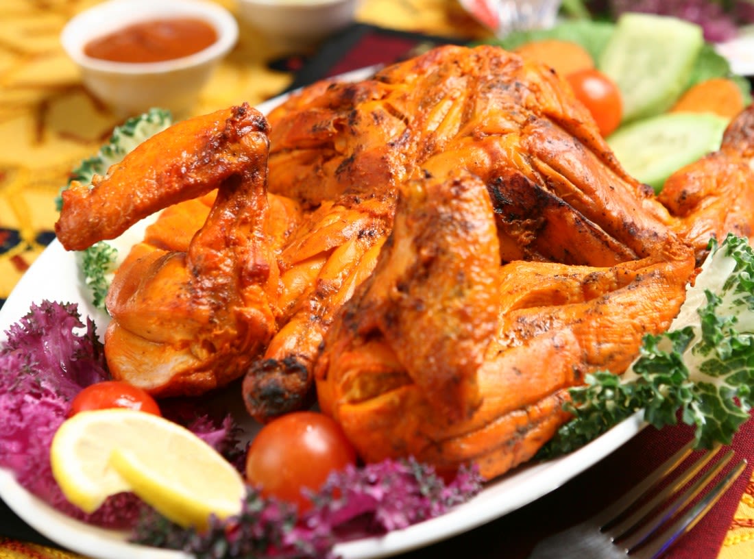 烤全鸡美食店,以人参、大枣和米为佐料,柴火烤制,口味清淡