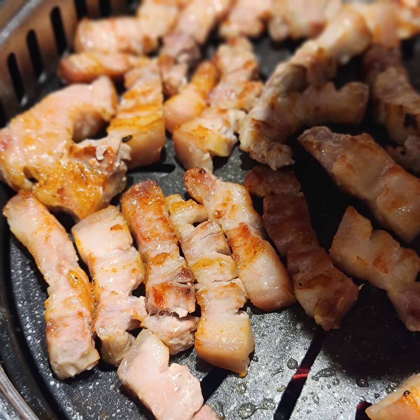 烤肉店,烤制熟成了两周的猪肉并蘸着金色特制盐享用