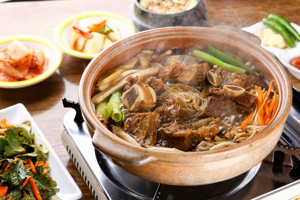 在传统器皿中整齐盛放炖排骨的餐厅