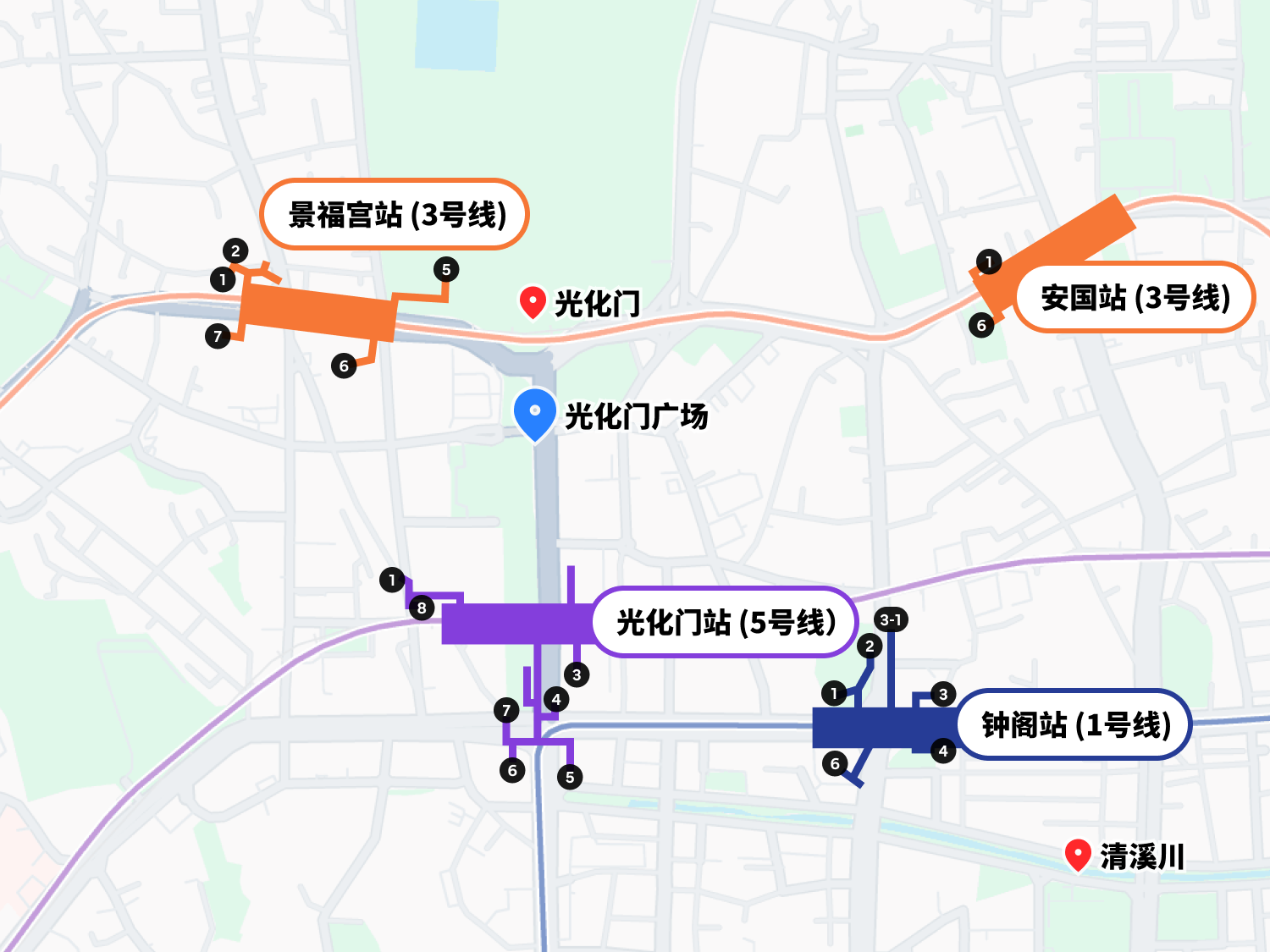 景福宫站 6号出口: 步行约 6分钟 安国站 6号出口: 步行约 15分钟 钟阁站 1号出口: 步行约 15分钟
