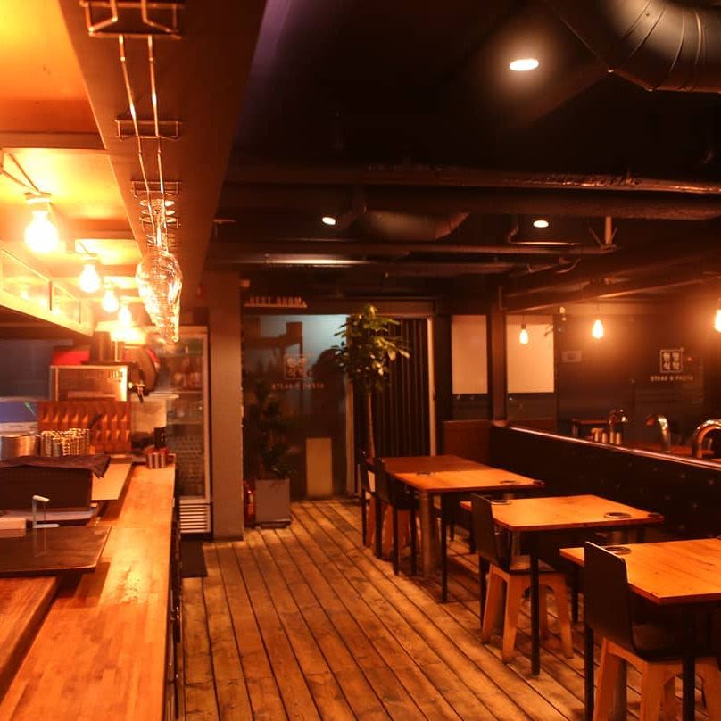 西餐美食店,切割成圆筒形的牛排可以在热板上烤着吃