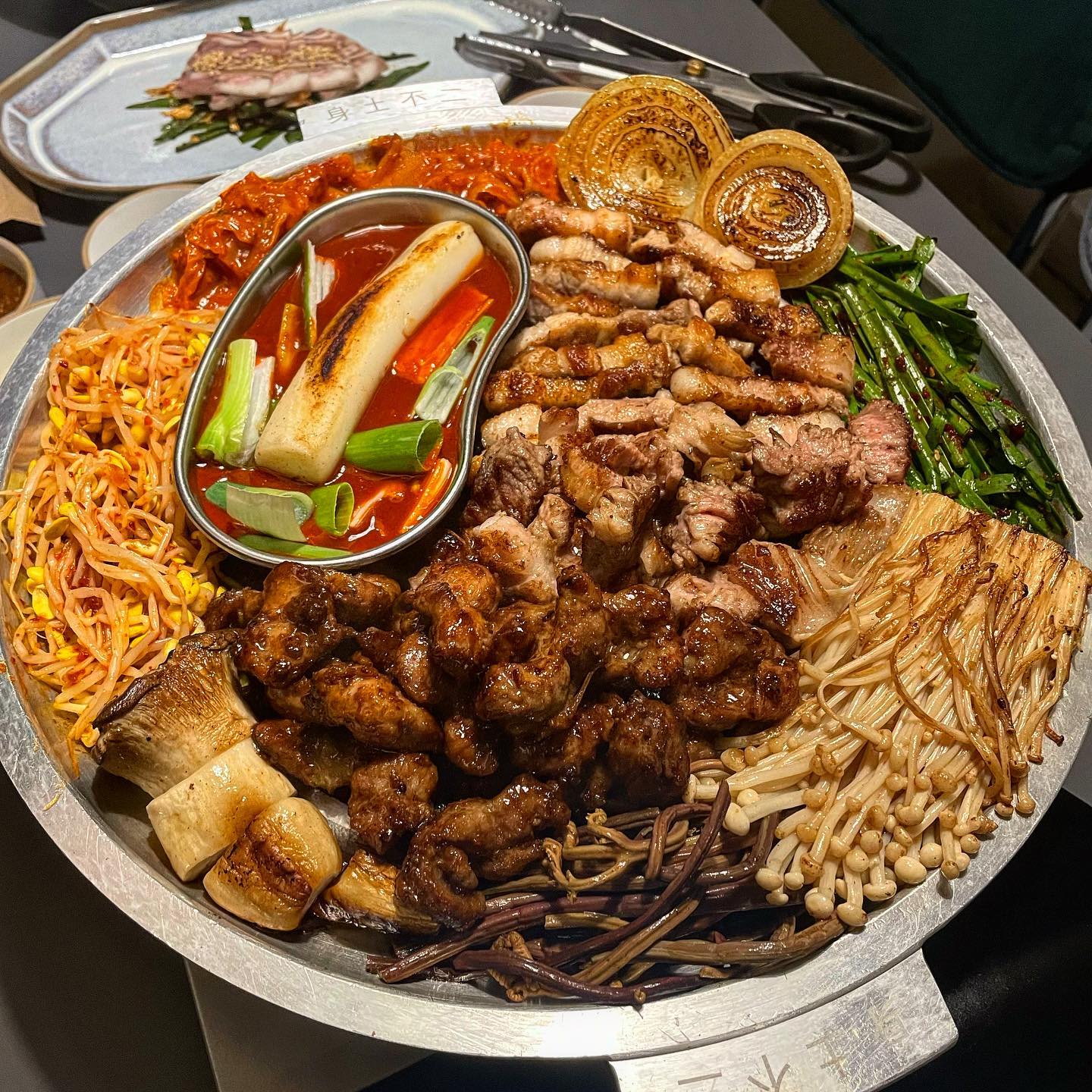 可舒适用餐的烤肉店,猪肉拼盘一次性烤完上桌
