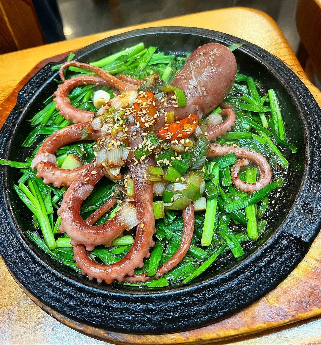 餐厅,口感弹牙的山章鱼炒菜让人垂涎