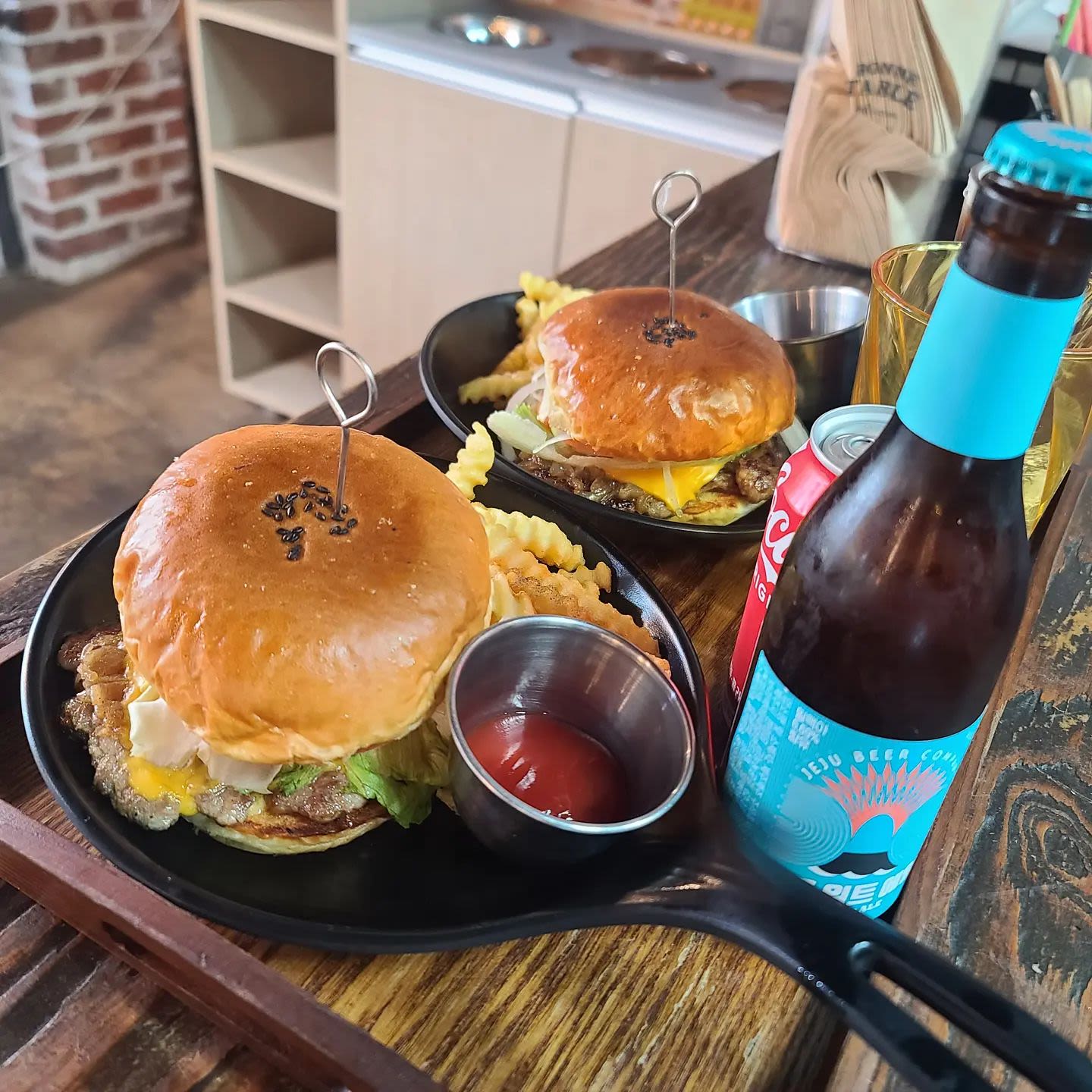 提供厚实黑猪肉和虾肉饼的手工汉堡专门店