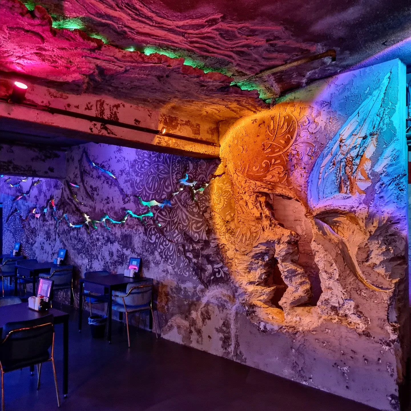 以蓝色花蝴蝶为主题,营造梦幻氛围的酒吧