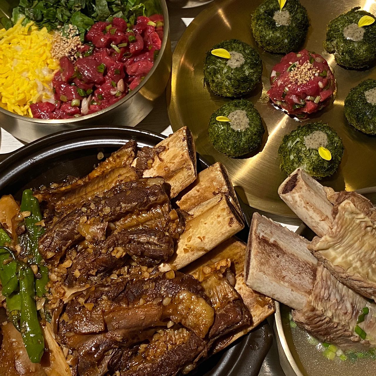 软糯的炖牛排骨和生拌牛肉甘苔饭团倍受欢迎