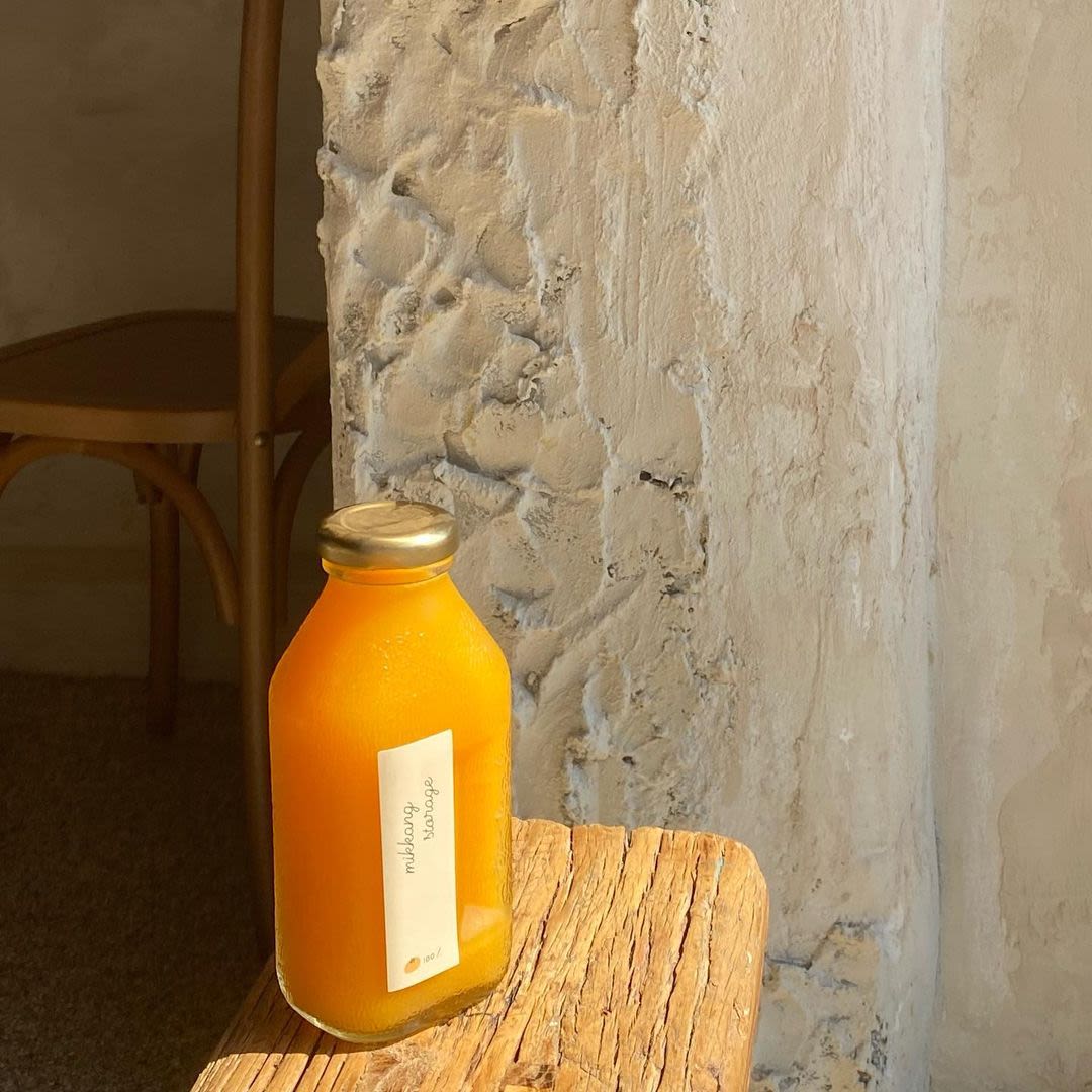 使用自家栽培和收获的柑橘制作的酸甜蜜柑果汁是这家咖啡厅的人气饮品
