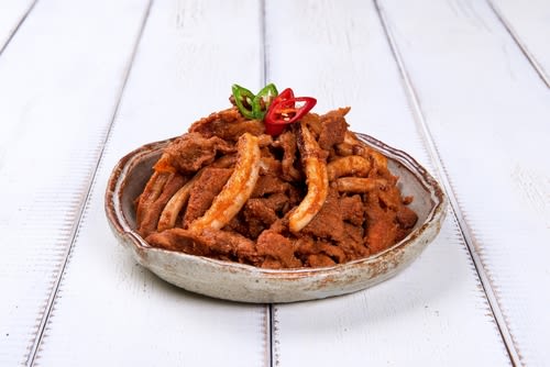 餐厅,提供将切好的萝卜与章鱼辛辣炒制,包裹在一起的“章鱼包饭”