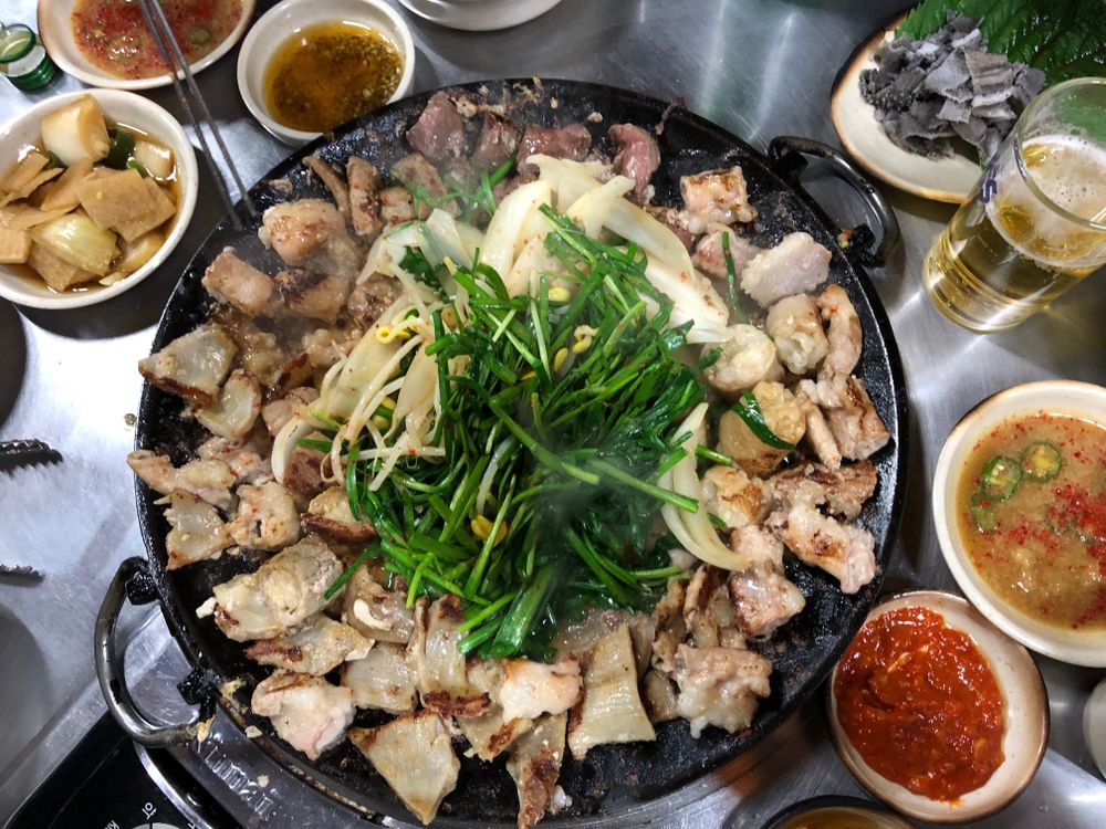 人气美食店,以香脆烤肠拼盘配韭菜而出名
