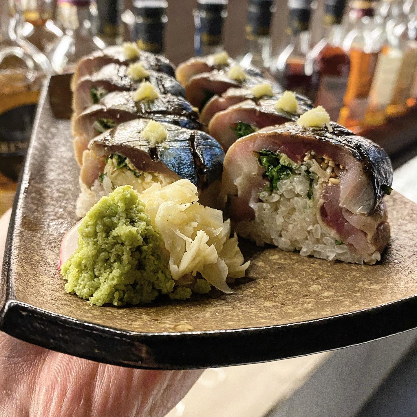 盖有厚实青花鱼生鱼片的寿司深受欢迎的美食店