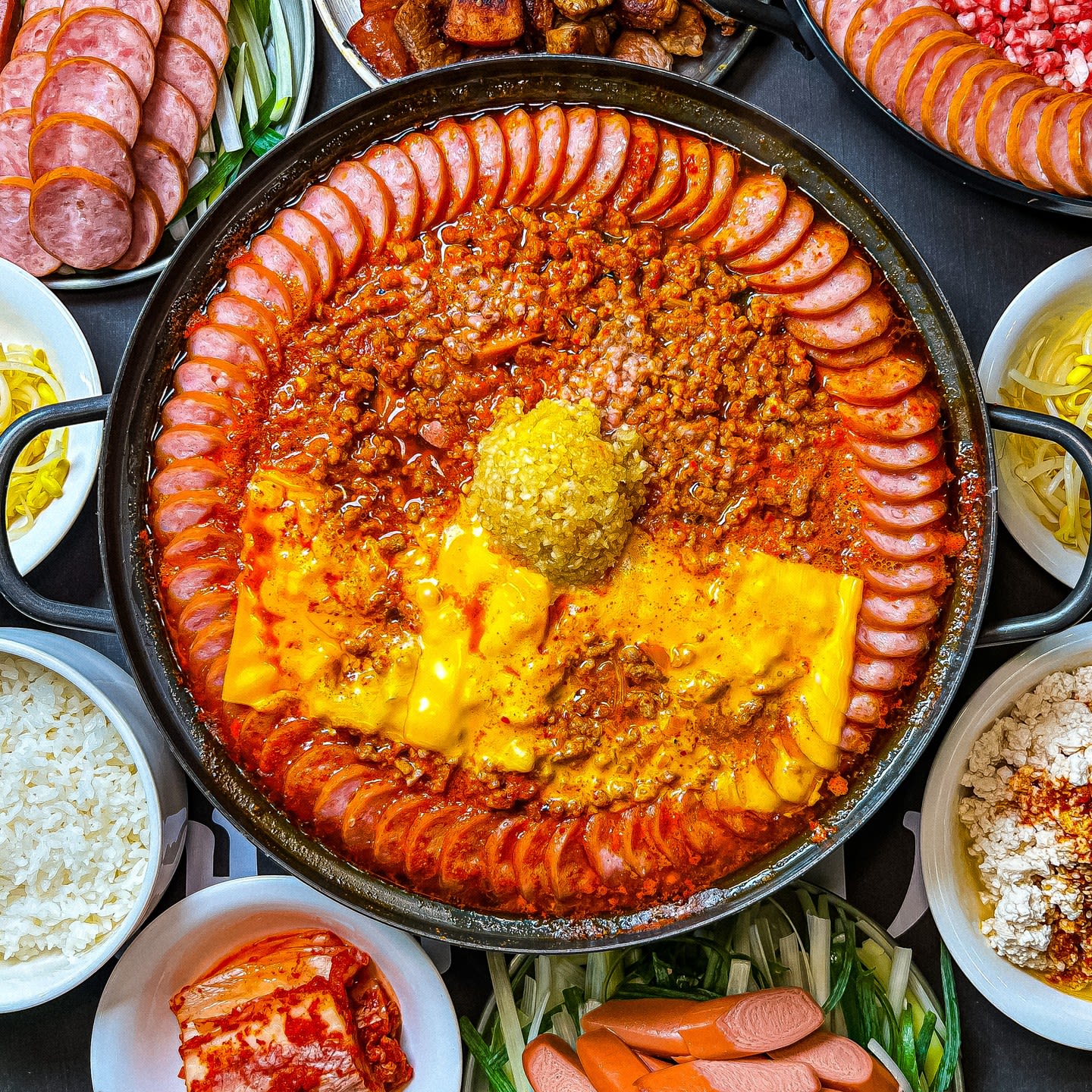 以加入很多香肠为特色的部队锅美食店,曾在美食节目中介绍