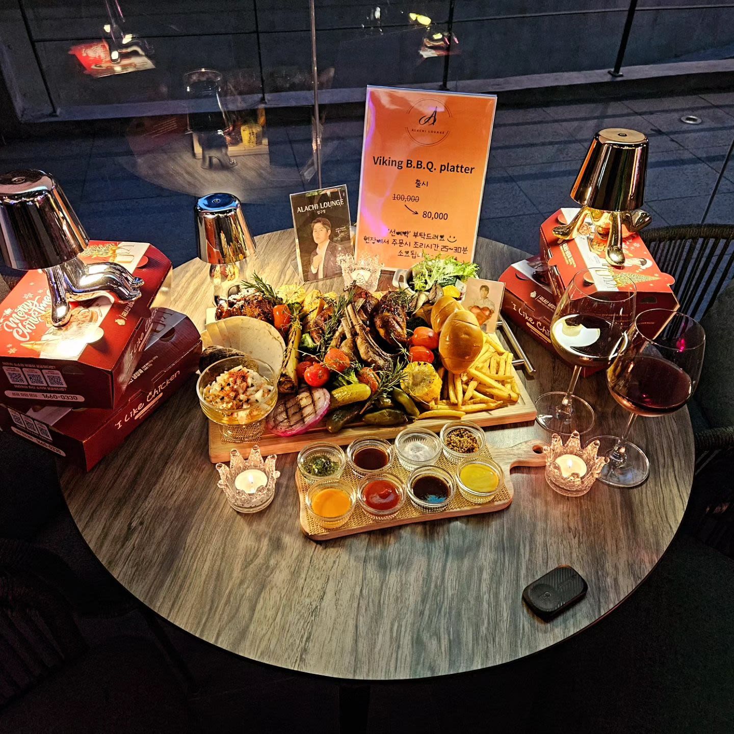 休闲餐厅,提供多种创意鸡肉料理和烧烤拼盘