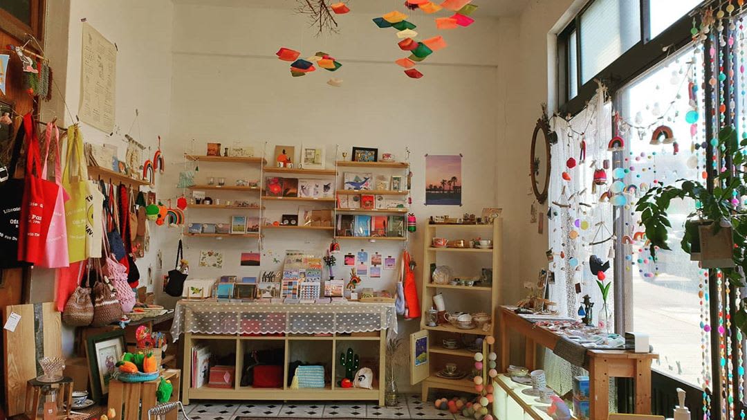 售卖明信片、贴纸及复古盘子等物品的怀旧小物店