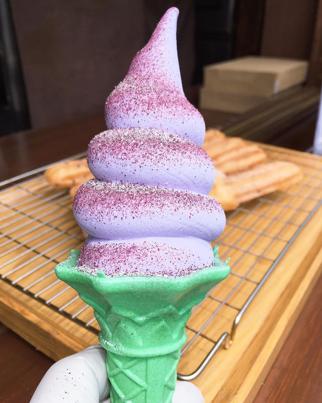 甜品店,以独特的紫色蓝莓冰淇淋吸引顾客