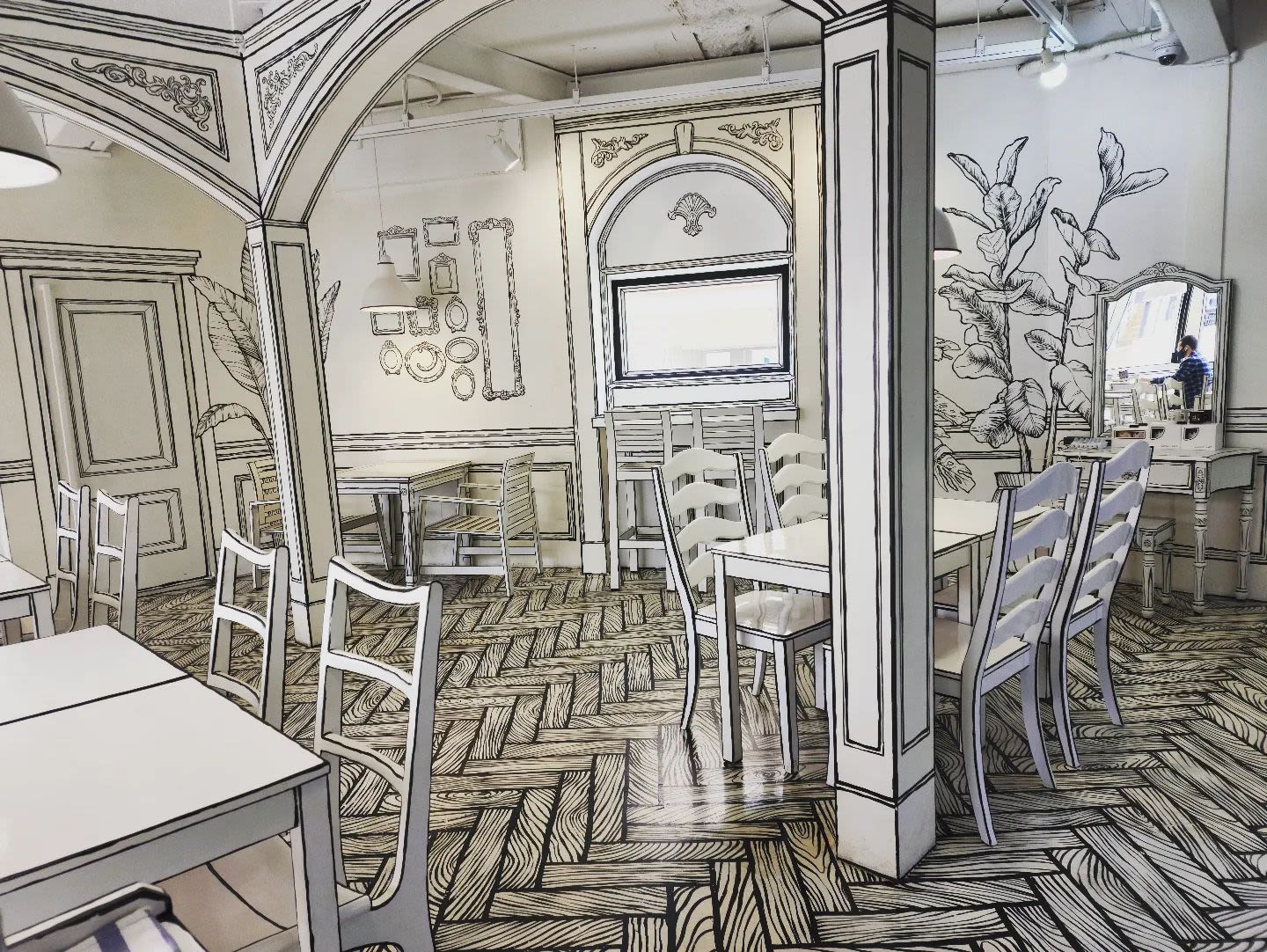 主题咖啡厅,独特的黑白插画主题装饰让人仿佛置身漫画中