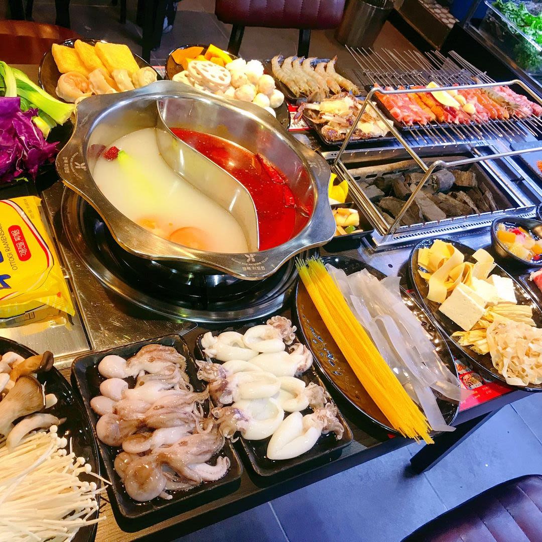 中式餐厅,提供无限量火锅和炭烤羊肉串