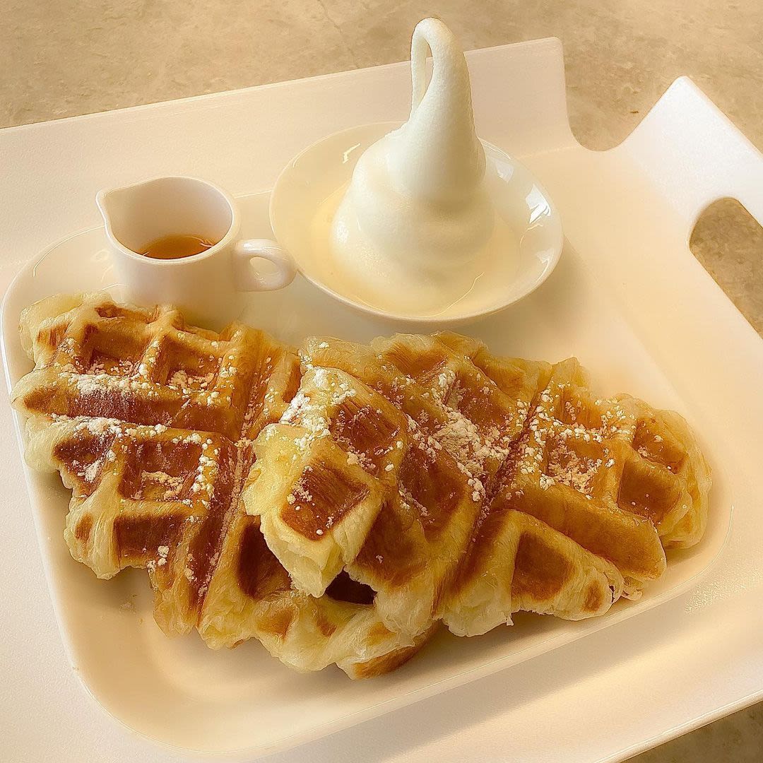 将可颂面团在华夫饼机上烤制,搭配冰淇淋