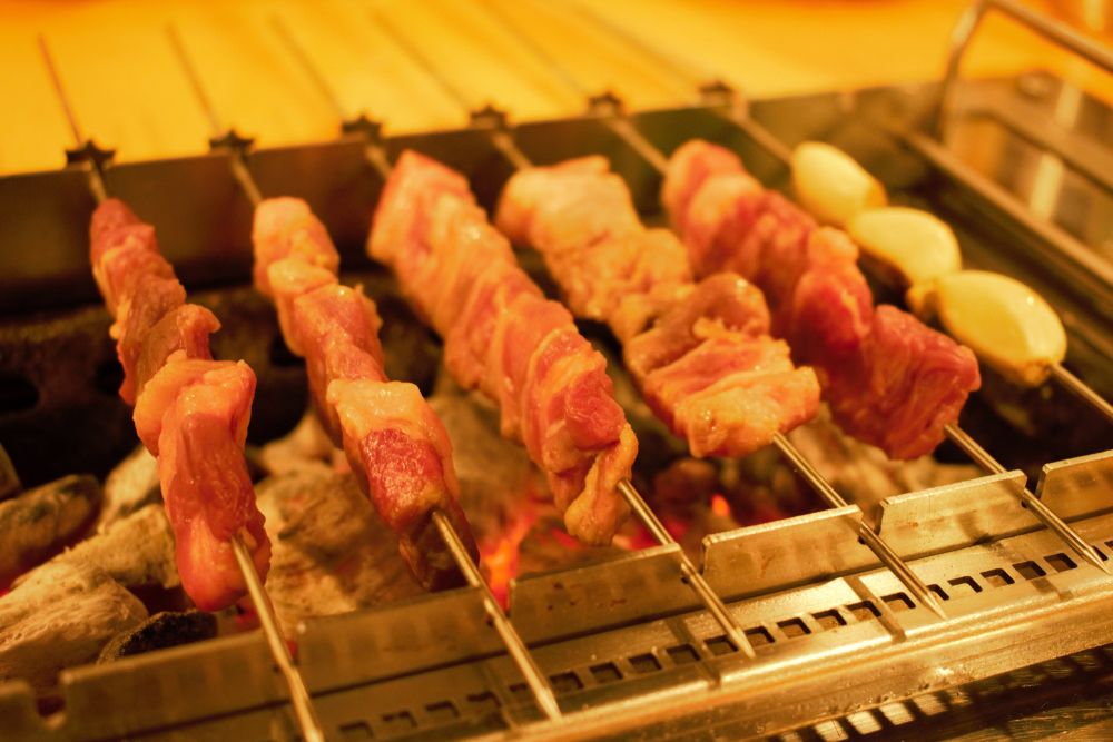烧烤餐厅,采用环保炭烤的羊肋排串充满香气,令人垂涎