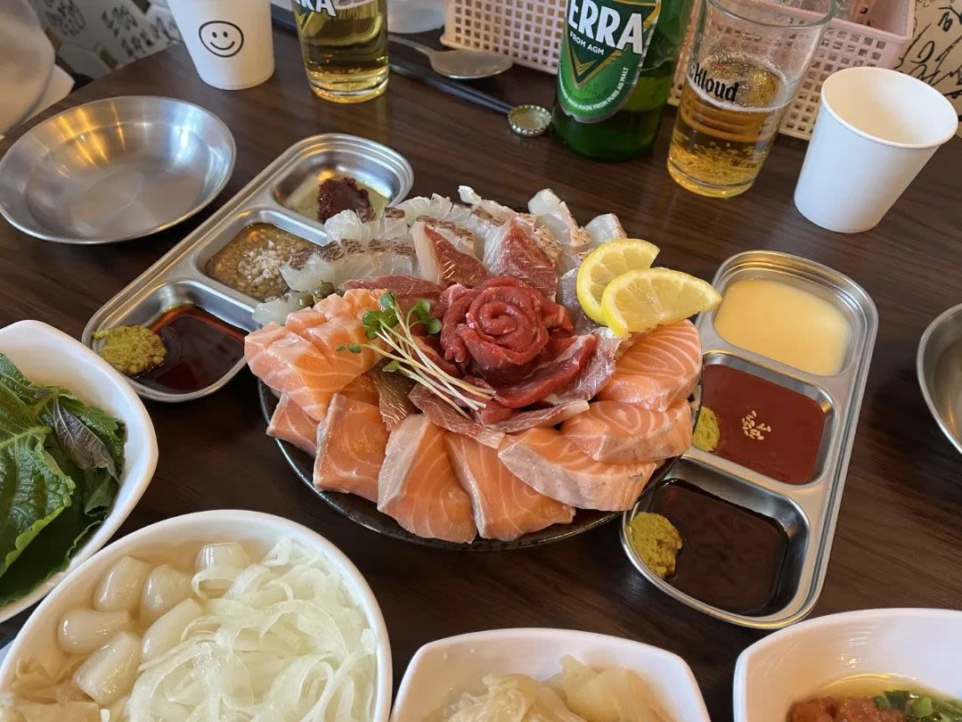 餐厅,以厚切生鱼片和釜山风鳀鱼汤为特色