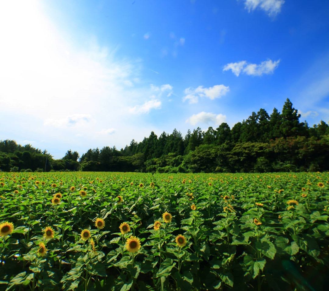 被石墙与杉树林包围的1500坪规模向日葵田