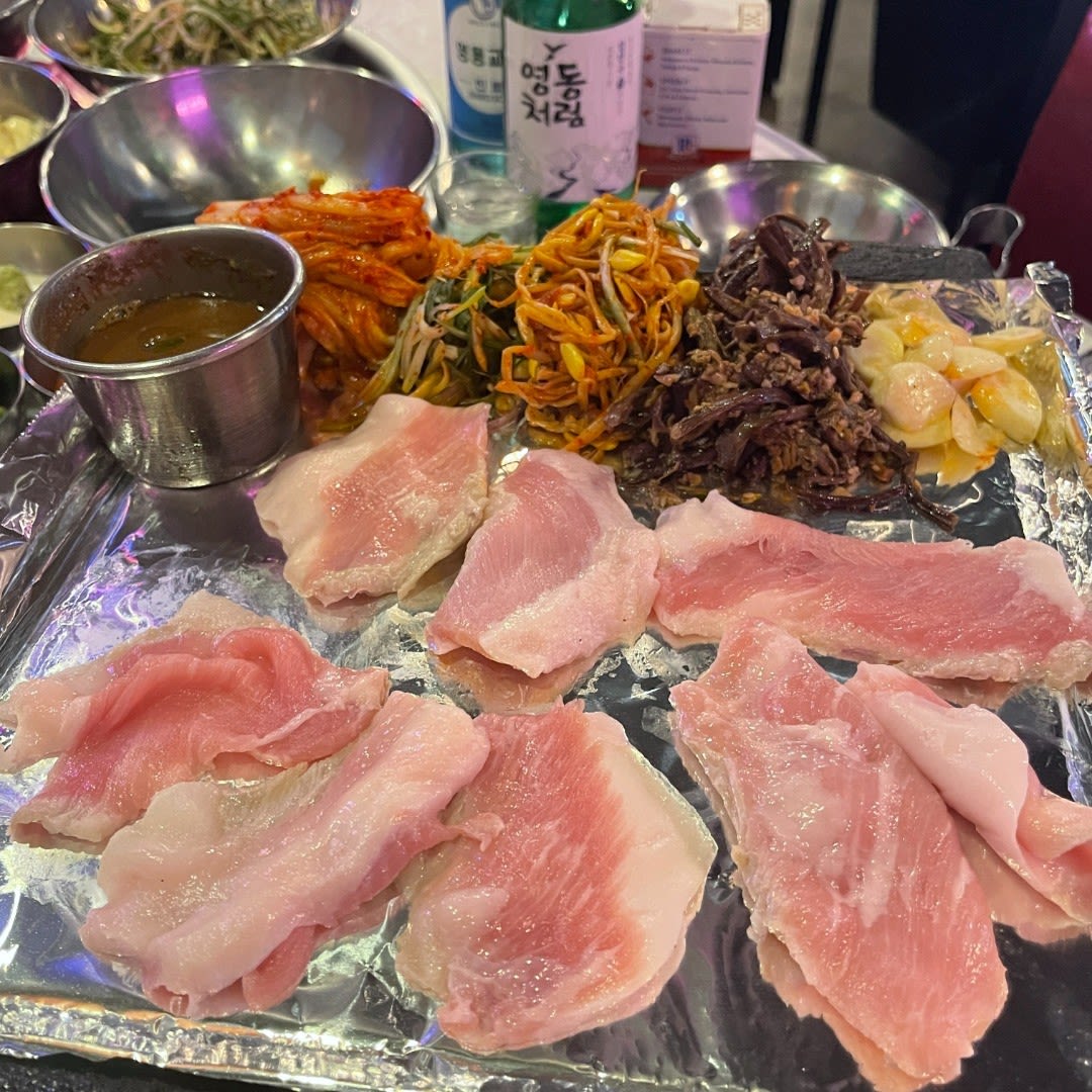 烤肉店,提供黑猪肉冷冻三层肉和玫瑰形状的横膈膜肉