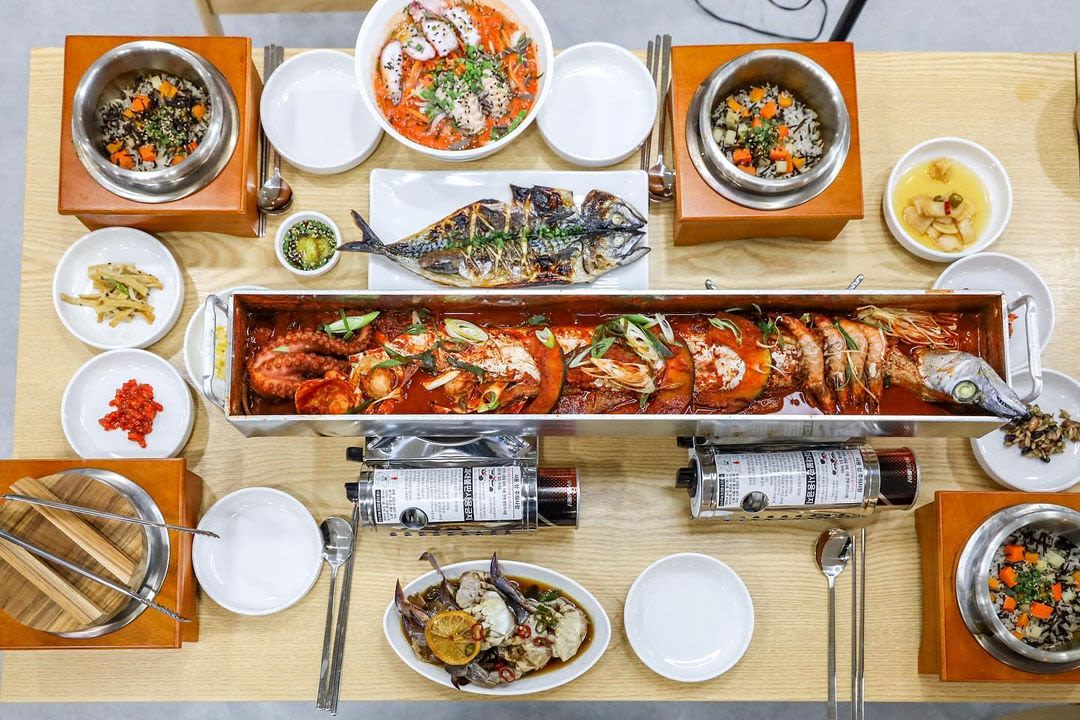 提供放入各种海鲜的整条炖白带鱼的海景餐厅
