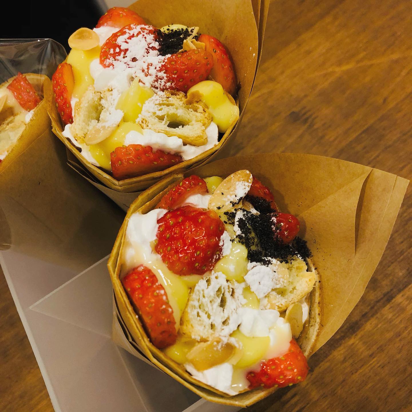 甜品店,供应加入鲜奶油和时令水果的可丽饼