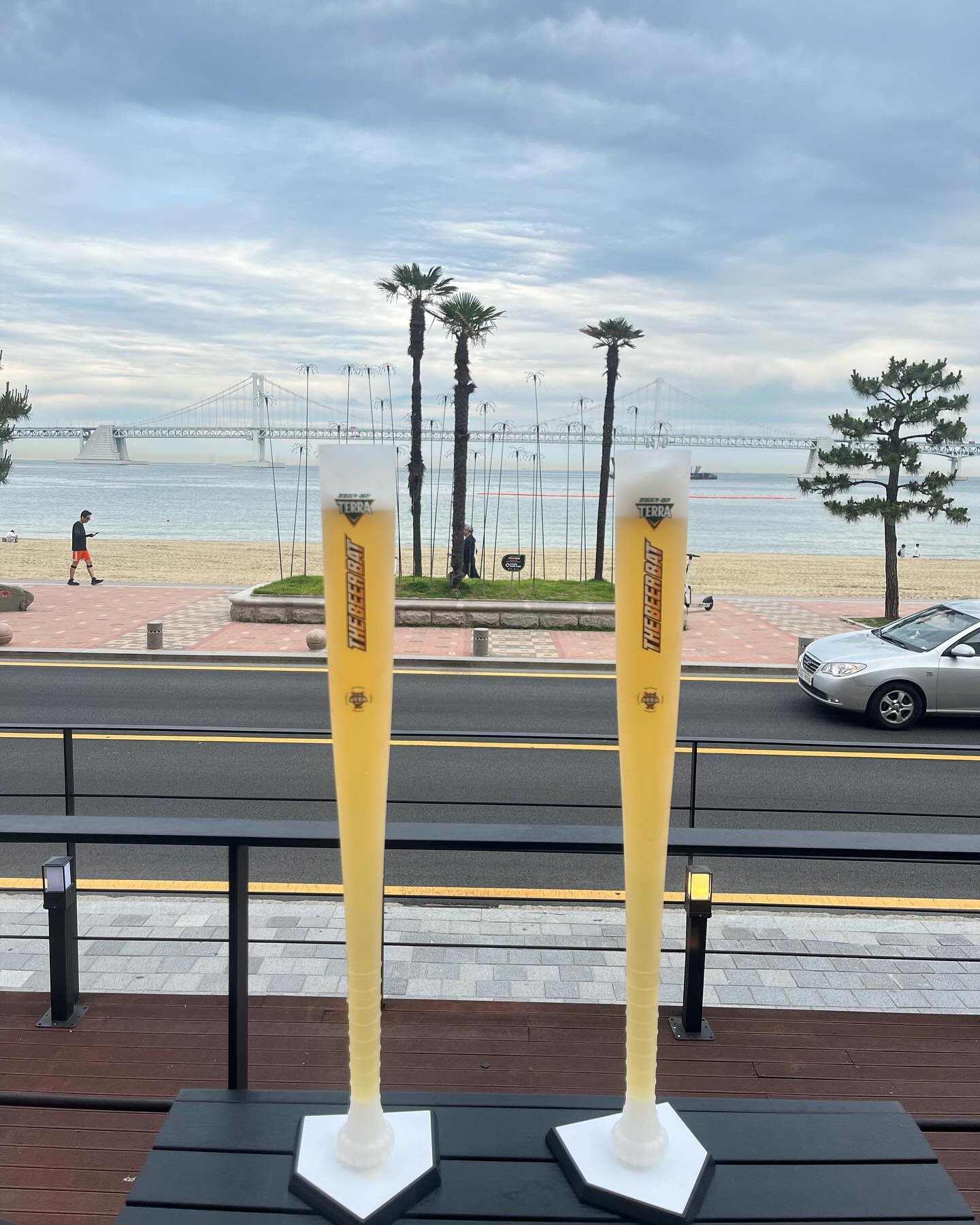海景酒吧,用30厘米长的棒球棒杯装啤酒
