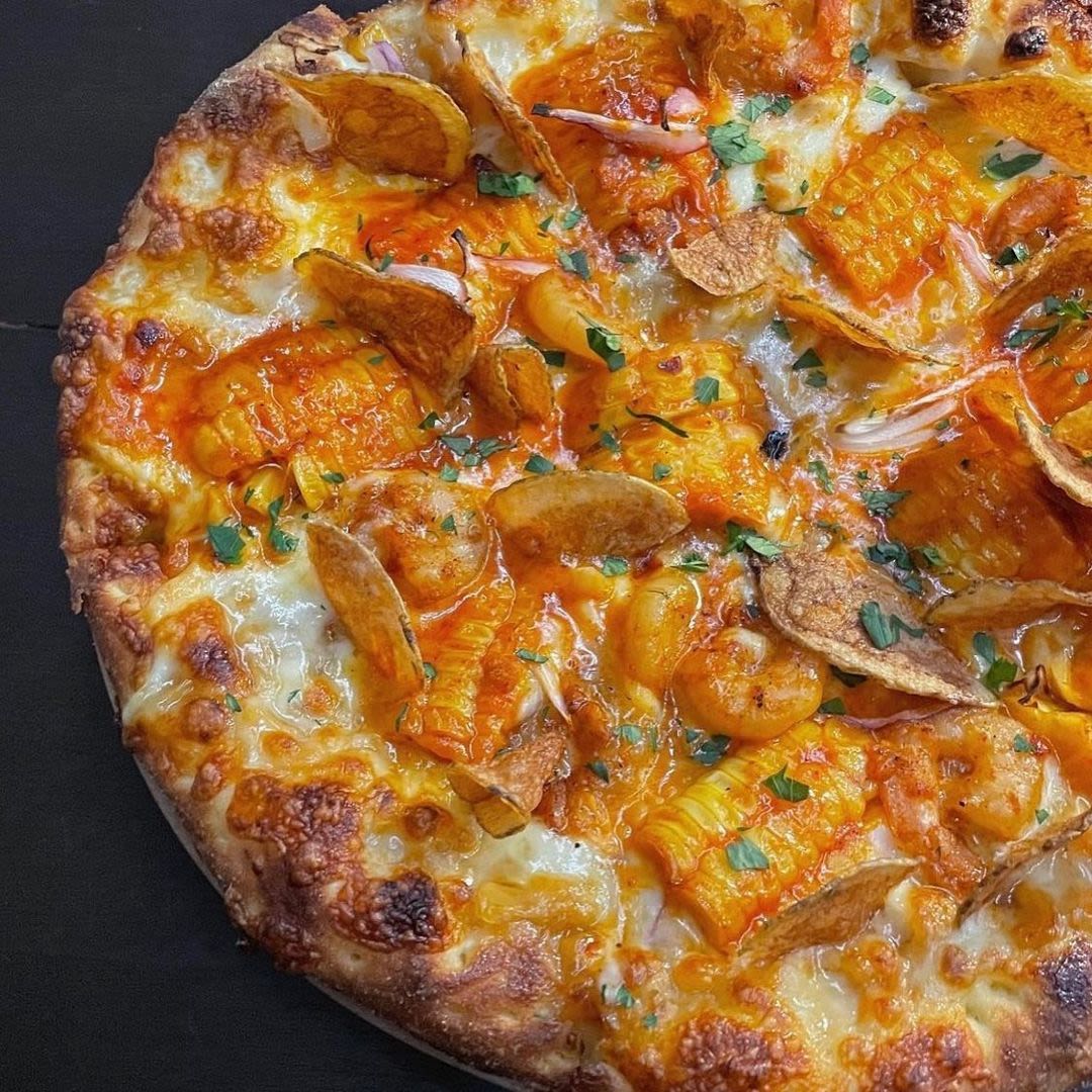 早午餐店,加入玉米与土豆丰富配料的香甜披萨深受顾客喜爱