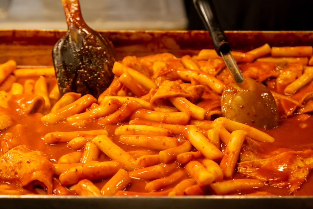 盛满盘子的辣炒年糕和炸物美食店,曾在美食节目中介绍