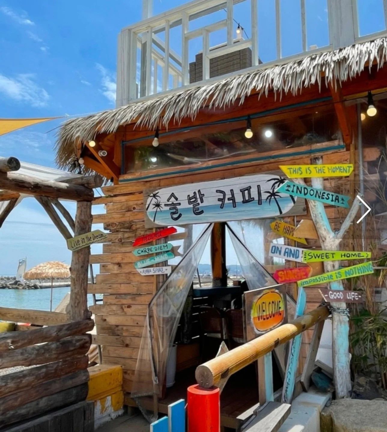 可观海景的咖啡厅,店里充满夏威夷气息,有着五彩斑斓的拍照区