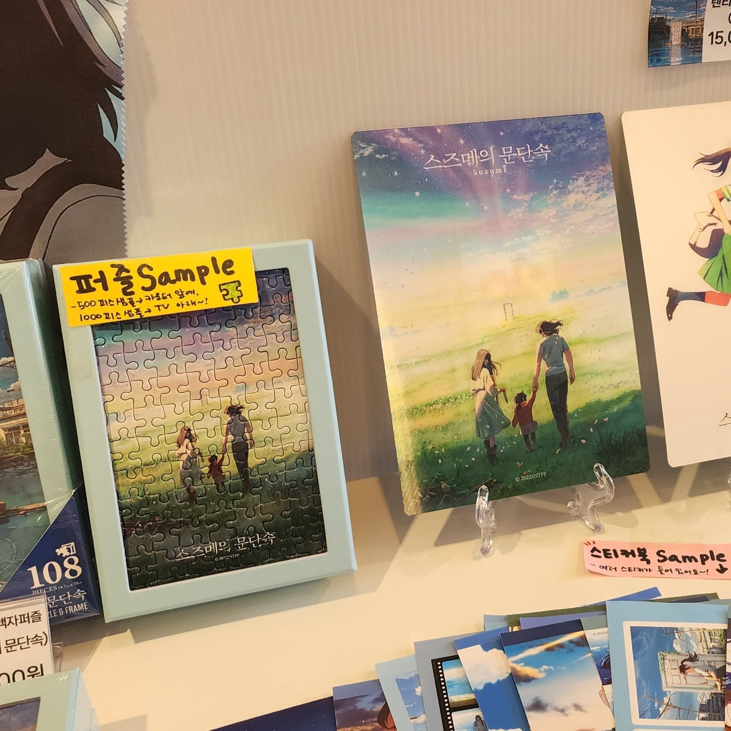 人气电影《铃芽之旅》主题的快闪店,展示多种周边产品