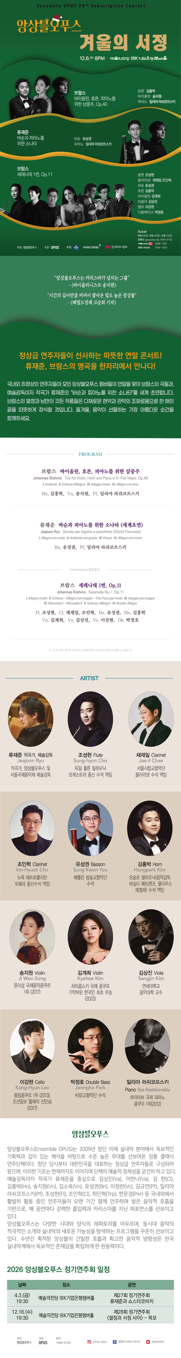 주최 앙상블오푸스 주관 오푸스 문의 1544-5142