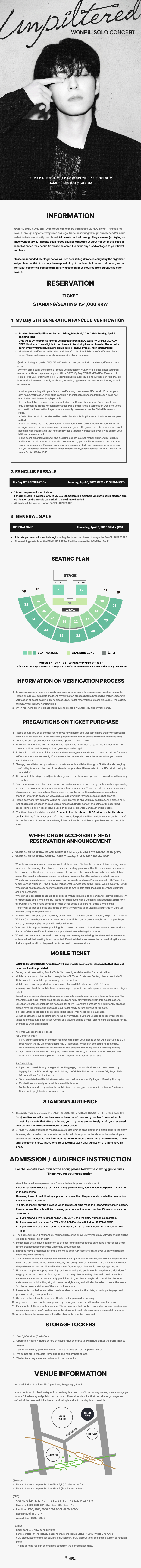 ※ According to the terms on the notice of this concert, ticket reservations will be canceled for cases where abnormal or fraudulent methods(e.g., using a macro program, etc.) have been detected in the ticket purchasing process.※ By making a ticket reservation, you are accepting the terms in this notice. These terms are subject to change depending on event circumstances. Please check the information carefully before attending the concert to ensure that you are not adversely affected in any way.